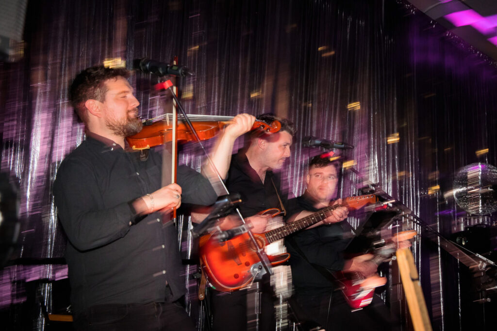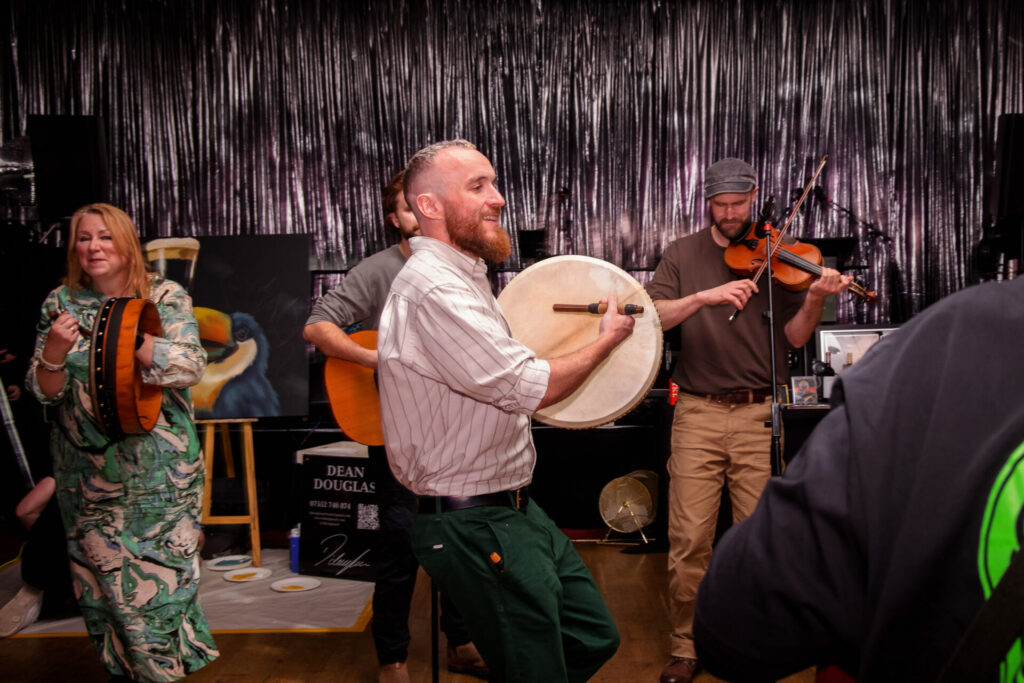 Between courses, the atmosphere lifted even further with an unforgettable bodhrán flashmob, led by Ruairí Glasheen and accompanied by a talented trad trio featuring Brogan McAuliffe on concertina, Sinead Munroe on fiddle and Tad Sargent on guitar. The evening then continued with dancing as the Peppered Aces live band brought the house down and kept the celebrations going late into the night.